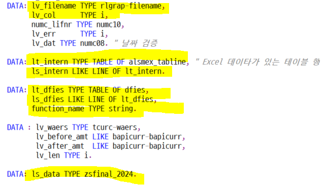 FIELD-SYMBOLS: <fs_field>. " 동적할당을 위한 필드심볼